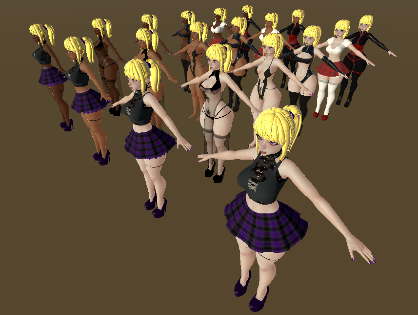 -Thirty optimized avatars, one for each outfit and skin tone option.
