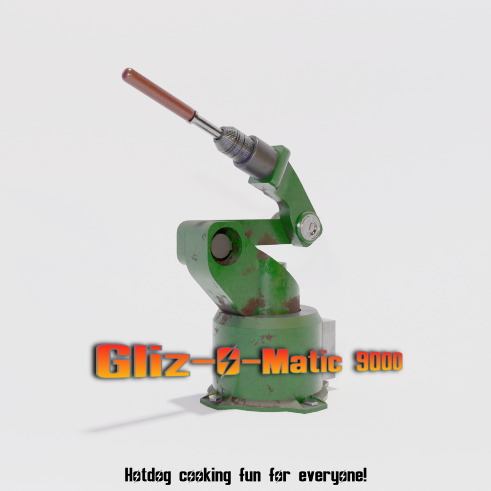 Introducing, from the robotics division here at RevCorp Labs, the Gliz-O-Matic 9000! You can now rest easy knowing that your fragile cylinder of meat is now in good hands! Simply deploy this industrial-strength portable hydraulic arm near your next campfire, and start off your camping trip on the right foot! You'll be snuggling your succulent meat cylinders between warm buns in no time!